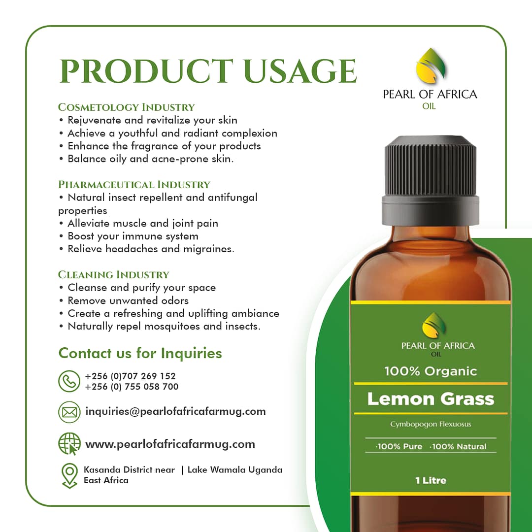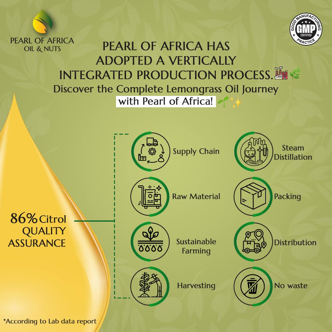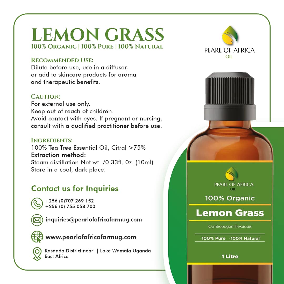 Order now and experience the unparalleled quality of Pearl of Africa’s lemongrass oil.