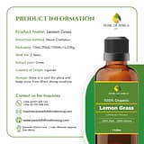 100% Organic and Sustainable: Our lemongrass oil is derived from organically grown lemongrass plants cultivated in our pristine farms. We prioritize sustainable farming methods, free from pesticides and harmful chemicals, ensuring the highest quality and purity of our oil.